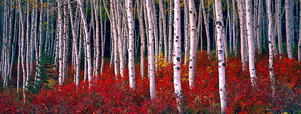 Steven Friedman Sunrise Aspens and Highbush Cranberry photograph mounted on DiBond panel 19 x 50 in. $2,200.00