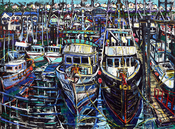| Brian Scott Tug Boats Together oil on canvas 36 x 48 in. $2,750.00 |