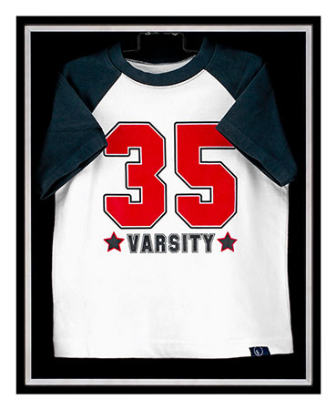 Nielsen’s front loading preassembled display case includes a garment hanging system that is so easy to use; you may find yourself changing out the jersey with the season. Place your jersey on the hanging system inside the shadow box and snap on lid. Made in the USA. Size 40 x 32 in. |