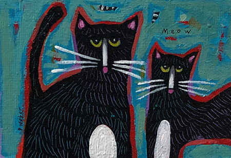 Pam Weber Best Feline Friends acrylic on canvas 3 x 4 in 7.62 x 10.2 cm SOLD
