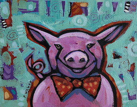 Pam Weber Going Hog Wild acrylic on canvas 3 x 4 in 7.62 x 10.2 cm $100.00