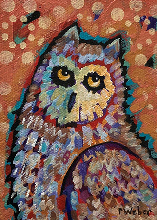 Pam Weber Owl by Myself acrylic on canvas 10 x 9 in 25.4 x 22.9 cm SOLD